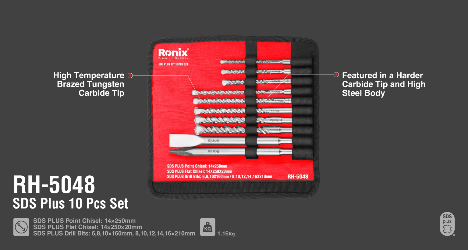 Conjunto De Brocas SDS Plus 10 Peças Ronix RH-5048