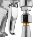 A pistola de jateamento Ronix RH-6602 é uma ferramenta pneumática portátil e potente, ideal para aplicações industriais de pequeno porte e projetos DIY. Com corpo em alumínio leve e resistente, ela oferece excelente manuseio e durabilidade. Seu bico de aço inoxidável de 5,5 mm é à prova de ferrugem, e a tampa de latão reforça a robustez do conjunto. A caneca de 1000 ml permite trabalhar por mais tempo sem interrupções, enquanto o design exclusivo da válvula de ar garante um jateamento uniforme e eficiente. O gatilho tipo pistola proporciona conforto durante o uso prolongado, e o sistema de sifão permite a aspiração de abrasivos ou líquidos diretamente da caneca, com pressão de trabalho de até 150 psi. Ideal para jateamento leve, selagem e aplicação de materiais como alcatrão, a RH-6602 é uma solução prática e confiável para oficinas e trabalhos em campo.
